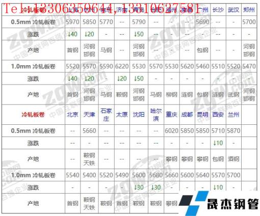 全國23個主要市場1.0mm 冷軋板卷平均價格5587元/噸,較上個交易日下調10元/噸。