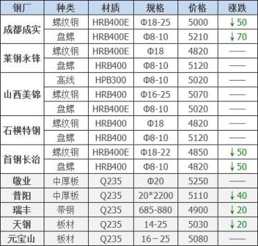 跌幅最大為成都成實(shí)盤螺;