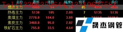 今日螺紋主力期貨漲84,收報4860,漲幅1.76%;熱卷主力漲105,收報5138,漲幅2.09%;焦煤主力漲104,收報2778,漲幅3.89%;焦炭主力漲98,收報3460,漲幅2.82%;鐵礦石主力漲33.5,收報755,漲幅4.64%。