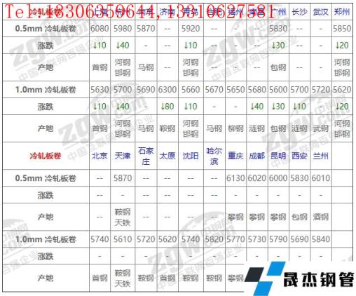 全國23個主要市場1.0mm 冷軋板卷平均價格5726元/噸,較上個交易日下調(diào)13元/噸。